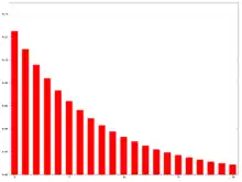 La media móvil exponencial es una media móvil ponderada exponencialmente. Se trata de la media aritmética de los valores anteriores con factores de ponderación que decrecen exponencialmente. La ponderación para cada punto de datos más antiguo decrece exponencialmente, nunca llegando a cero. El gráfico a la derecha muestra un ejemplo de la disminución de la ponderación. Da mayor importancia a los datos más recientes. Esta técnica será más eficiente que la media móvil simple y la media móvil ponderada a la hora de adaptar rápidamente el valor de la predicción a fluctuaciones en los datos recientes (v.gr: dándole una alta ponderación a los valores más nuevos).