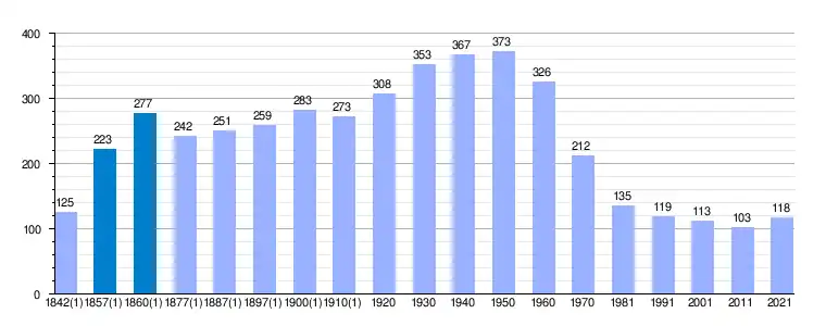 | Gráfica de evolución demográfica de Mediana de Voltoya[2] entre 1842(1) y 2021 |