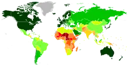 El Índice de pobreza humana de la ONU deriva del Índice de desarrollo humano y mide las carencias en 3 dimensiones básicas: vida larga y saludable, conocimiento y estándar decente de vida.[11]