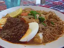 Originalmente un plato tailandés, pasó a ser una especialidad de Nyonya que actualmente preparan indios, malayos y puestos de cocina china en Singapur, con ligeras variaciones en los ingredientes. Se sirve con soja salada, tofu seco, huevo duro y tamarindo, guarneciéndolo con cebolleta y cebollino chino.