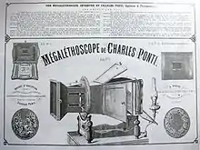 El megaletoscopio es un mecanismo óptico surgido a partir de la evolución del aletoscopio (patentado en 1861), diseñados ambos aparatos por el suizo Carlo Ponti (fotógrafo) (1823-1893).[1] Este aparato fue diseñado en los años 1860.