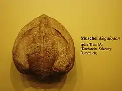 Megalodon es un género extinto de moluscos bivalvos que vivió del período Devónico al período Jurásico.[1] Durante el Devónico, los grandes moluscos de gruesa concha (el grupo Hippuritoida) eran dominantes en los arrecifes, incluyendo al Megalodon de distintiva apariencia, con una concha que en vista frontal hace pensar en un corazón.