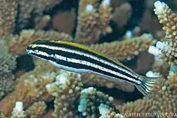 Meiacanthus lineatus es una especie de pez de la familia Blenniidae en el orden de los Perciformes.