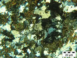 | Hábito cristalino | Granular en matriz o lamelar masivo | |