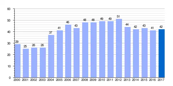 | Gráfica de evolución demográfica de Mendívil[2] entre 2000 y 2017 |