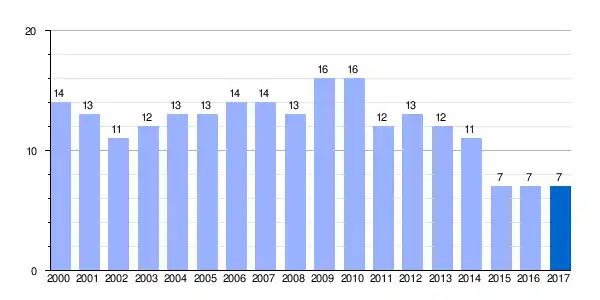 | Gráfica de evolución demográfica de Mendieta[4] entre 2000 y 2017 |