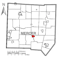 ![]() Ubicación en el condado de Mercer ![]() Ubicación del condado en Pensilvania ![]() Ubicación de Pensilvania en EE. UU. | ||