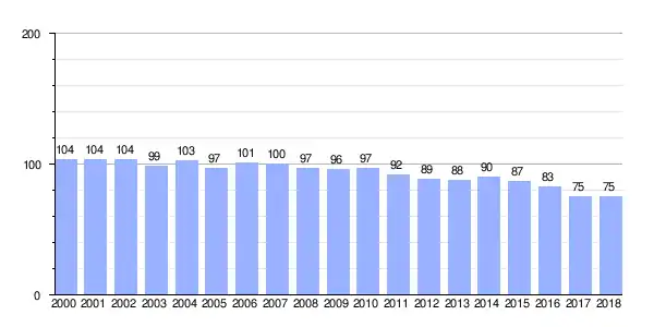 | Gráfica de evolución demográfica de Mercurín (parroquia) entre 2000 y 2018 |