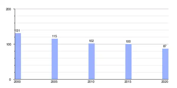 | Gráfica de evolución demográfica de Merlán (aldea) entre 2000 y 2020 |