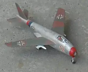 - Planta motriz: 1× Turborreactor Jumo 004 B.