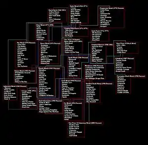 La película documenta varios subgéneros del metal. Del mismo modo, procura enumerar los ejemplos típicos de las bandas que caen en cada categoría.