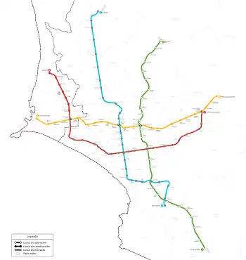 | En construcción | Gambetta - Carmen de La Legua[47][48][49] | 8 km (tramo 1) | Subterráneo | - | 8 | 8 subterráneas |