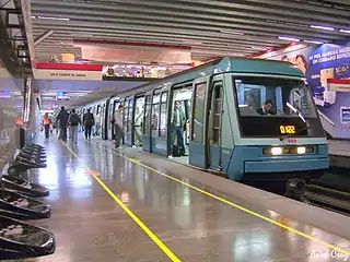 ![]() Tren NS-93 del Metro de Santiago en la estación Tobalaba, Línea 1. | ||