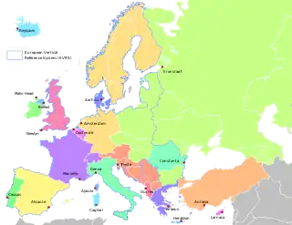 - Suiza y Liechtenstein: -1,6 a -7,5 cm, altura ortométrica - 'Metros sobre nivel del mar' (Meter über Meer) basado en la elevación de los Pierres du Niton en el lago Ginebra a 373,6 m (1,226 pies) sobre el mareógrafo de Marsella.
