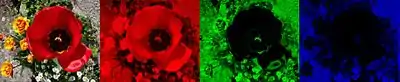 El modelo RGB o RVA está basado en el control de la intensidad de los tres colores primarios de luz: rojo, verde y azul; aunque estos colores pueden tener variaciones de acuerdo con el espacio de color. Estos espacios de color pueden ser: