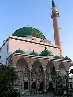 La mezquita fue el proyecto del gobernador otomano de Acre, Ahmed al Jezzar Pasha, apodado como el Carnicero, en el período tardío del siglo XVIII; infame por su crueldad, por sus impresionantes actos públicos y conocido por vencer a Napoleón en el sitio de Acre en 1799.