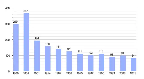 | Gráfica de evolución demográfica de Mièges entre 1800 y 2013 |