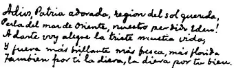 Adiós, patria adorada, región del sol querida,
