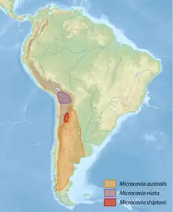 Microcavia es un género de roedores de la familia Caviidae. El nombre del género alude a la similitud morfológica de estos animales con los representantes del género Cavia, pero de tamaño menor ("micro"). Son únicos dentro de su familia en el sentido de que sus dientes premolares no crecen y sustituyen a los dientes deciduos originales de las mejillas hasta después del nacimiento del animal; en otros géneros esto ocurre en el útero.[1]