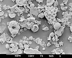 Microfósiles del fondo marino con cocolitóforos y dinoflagelados.