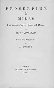 - Shelley, Mary. Proserpine & Midas: Two Unpublished Mythological Dramas by Mary Shelley. Ed. A. Koszul. Londres: Humphrey Milford, 1922.