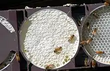 Antes de la invención del extractor de miel, casi toda la miel producida era en forma de miel en panal.[1] Hoy en día, la mayoría de la miel se produce por extracción, pero la miel en panal sigue siendo popular entre los consumidores, tanto para comer "como está" como para combinarse con miel extraída para conseguir miel con trozos. Los apicultores aficionados y los vendedores ambulantes pueden desarrollar sus habilidades apícolas produciendo miel en panal, que requiere una atención más metículosa que la producción de miel por extracción.[2] Debido al trabajo más exigente que conlleva, la miel en panal tiene un mayor valor de venta minorista que la miel extraída. ($ 17 / libra en comparación con $ 6.50 / libra EE. UU.).[3] La producción de miel en panal es más adecuada para áreas con una intensa y prolongada floración, como por ejemplo el eucalipto, alfalfa y trébol amarillo. Las áreas boscosas no son tan adecuadas para la producción de miel en panales, ya que las abejas tienden a recolectar más propóleos, lo que dificulta la recolección de miel en panales. Este problema se ha eludido en gran parte con la adopción de cuadros especializados, como el cuadro Ross Round, que evita la acumulación de propóleos en las unidades vendibles.