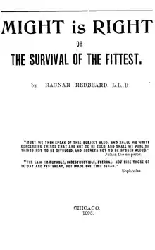 El poder es la razón, o La supervivencia del más apto, es un libro escrito bajo el seudónimo de "Ragnar Redbeard". Fue publicado inicialmente en 1890, y hace una fuerte defensa del egoísmo anarquista, la falta de valores morales establecidos por la sociedad, el consecuencialismo y el hedonismo psicológico. En El poder es la razón, Redbeard rehúsa las ideas convencionales sobre los derechos humanos y los derechos naturales, y argumenta que el uso de la fuerza o poder físico, es la única forma de establecer los derechos morales (a lo Calicles o Trasímaco). El libro también ataca al Cristianismo y a la Democracia. Las teorías contemporáneas sobre la moralidad del esclavo y el maestro y la mentalidad de rebaño de Friedrich Nietzsche, sirvieron como inspiración clara para Redbeard.
