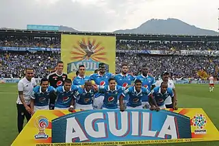 El Azul y Blanco Millonarios Fútbol Club S. A.,[1] coloquialmente conocido como «Millonarios Fútbol Club», o simplemente como «Millonarios», es un club de fútbol colombiano con sede en la ciudad de Bogotá, capital del país. Fue fundado por un grupo de estudiantes del Colegio San Bartolomé (Bogotá) en 1937 y registrado constitucionalmente por el empresario Alfonso Senior el 18 de junio de 1946 con el nombre de «Club Deportivo Los Millonarios»; adoptó su actual denominación en 2011 cuando fue reconstituido como sociedad anónima.[8][9] Milita en la Primera División de Colombia, jugando todas sus ediciones y siendo el de más puntos en su clasificación histórica; disputa sus partidos en el Estadio El Campín.[10]