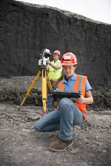Láser perforando un sitio de minería por un minero de carbón usando un escáner láser Maptek I en 2014.