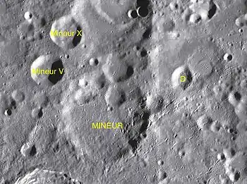 Por convención estos elementos son identificados en los mapas lunares poniendo la letra en el lado del punto medio del cráter que está más cercano a Mineur.