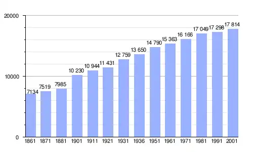 Gráfica de evolución demográfica de Minturno entre 1861 y 2001