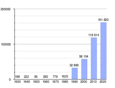 | Gráfica de evolución demográfica de Miramar entre 1930 y 2020 |