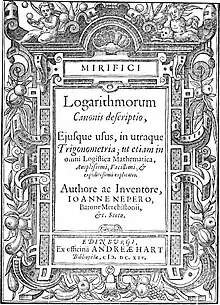 - Napier, John (1614). Mirifici Logarithmorum Canonis Descriptio (en latín). Edimburgo, Escocia (Reino Unido): Andrew Hart.