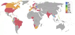 | Retirados | Bahamas, Bonaire, Bulgaria, Colombia, Croacia, Curazao, Egipto, El Salvador, Etiopía, Finlandia, Grecia, Guinea Ecuatorial, Hong Kong, Islas Vírgenes de los Estados Unidos, Letonia, Líbano, Moldavia, Nueva Zelanda, Países Bajos, Perú, Polinesia Francesa, República Eslovaca, Rusia, Singapur, Togo, Ucrania, Zimbabue | ||||