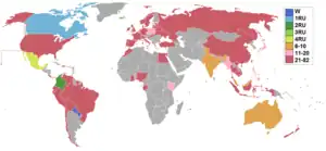 | Regreso | Alemania, China Taipéi, Croacia, Curazao, Egipto, Georgia, Ghana, Hong Kong, Israel, Jamaica, Letonia, Lituania, Macao, Nigeria, Paraguay, República Eslovaca, Rusia, Singapur, Vietnam | ||||