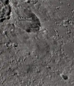 Por convención estos elementos son identificados en los mapas lunares poniendo la letra en el lado del punto medio del cráter que está más cercano a Mitchell.
