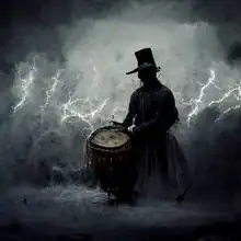 Su nombre le proviene de lo oscuro de su figura, vestido con ropas oscuras, un gran sombrero (que en ocasiones se describe como de copa) y con la cara tiznada.