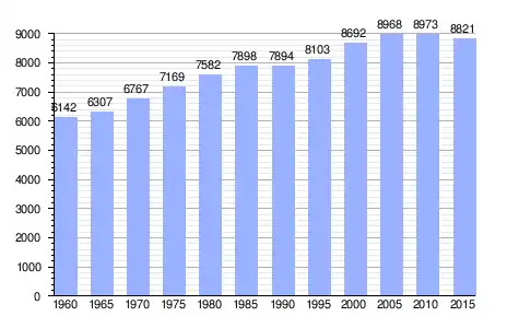 | Gráfica de evolución demográfica de Miyada entre 1960 y 2015 |