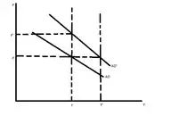 Muestra las combinaciones de nivel de precios y el nivel de la producción en el que los mercados de bienes y activos están simultáneamente en equilibrio. La figura muestra arriba IS y LM curvas, donde la curva LM se desplaza hacia abajo a la derecha para LM 'y cambiantes por lo tanto el nuevo equilibrio a E', donde los bienes y el mercado monetario se limpia. Ahora, el nuevo nivel de producción Y 'se corresponde con el menor nivel de precios P'. Por lo tanto una reducción en el precio, que se muestra en la figura, lleva a un aumento en el equilibrio y el gasto.
