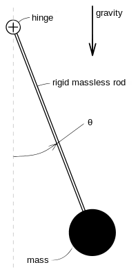 Un problema no lineal clásico y ampliamente estudiado es la dinámica de un péndulo sin fricción bajo la influencia de la gravedad. Utilizando la mecánica Lagrangiana, se puede demostrar[9] que el desplazamiento del péndulo puede ser descripto por la ecuación nolineal adimensional