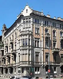 Turín, pese a tener un panorama arquitectónico caracterizado predominantemente por el estilo barroco de las escuelas guariniana y juvarriana que exhiben los numerosos palacios nobiliarios y residencias sabaudas, en el ventenio a caballo entre los siglos XIX y XX se dejó impregnar por esta nueva corriente estilística. Conocido inicialmente como arte nuova o, según el periodista turinés Emilio Thovez, arte floreale, este nuevo estilo asombró por ser tan «fielmente naturalista y en su esencia profundamente decorativo».[11] Tras las ediciones de la Esposizione Internazionale d'Arte Decorativa Moderna, Turín experimentó una creciente proliferación de este nuevo estilo principalmente en el ámbito arquitectónico, celebrando una especie de «renacimiento de las artes decorativas»,[11][12] valiéndose de las contribuciones de los mejores arquitectos de la época como Raimondo D'Aronco y el turinés Pietro Fenoglio, que se afirmó por su intensa actividad de ingeniero y que hizo del liberty turinés uno de los ejemplos más brillantes y coherentes del variado panorama arquitectónico italiano de la época.[13]