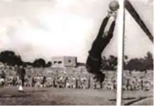 ![]() Sandoval tapando un disparo de Angel Jara Saguier, jugando por Sportivo Luqueño contra Cerro Porteño, 1961. | ||