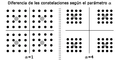 - El parámetro α nos indica la distancia que hay entre los 4 símbolos de la QPSK.