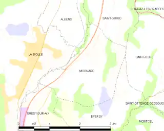 Mognard era una comuna francesa situada en el departamento de Saboya, de la región de Auvernia-Ródano-Alpes, que el 1 de enero de 2016 pasó a ser una comuna delegada de la comuna nueva de Entrelacs[3] al fusionarse con las comunas de Albens, Cessens, Épersy, Saint-Germain-la-Chambotte y Saint-Girod.