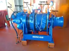 Chigre a motor usado para remolcar, con indicación de sus partes.