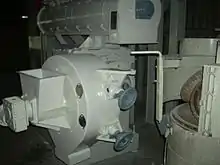 Hay dos tipos comunes de molinos de pellets a gran escala: molinos de troquel plano y molinos de anillo. Las fresas planas usan una matriz plana con ranuras. El polvo se introduce en la parte superior de la matriz y, a medida que la matriz gira, un rodillo presiona el polvo a través de los orificios de la matriz. Un cortador en el otro lado de la matriz corta la bolita expuesta libre de la matriz.[1] En la matriz anular hay una ranura radial a lo largo de la matriz. El polvo se introduce en el interior de la matriz y los esparcidores distribuyen uniformemente el polvo. Luego, dos rodillos comprimen el polvo a través de los orificios del troquel. Se utilizan dos cortadores para cortar los pellets libres desde el exterior de la matriz.[2]