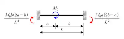 ![]() Carga puntual de valor P | ![]() Momento de valor M0 |