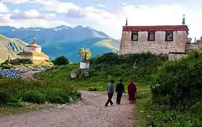 El Monasterio Réting fue devastado por los Guardias Rojos durante la Revolución Cultural y solo ha sido parcialmente restaurado.[4]