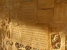 Las hiladas de los pilares, de un único sillar en las esquinas están dispuestos de tal forma para formar la cruz.[3]