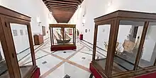 - Lápida del claustro: En el patio de las Madres, al pie de la pila adosada al aljibe, hay una lápida de mármol blanco (ancho, 0'42 m.; largo, 0'63 m.). Pertenece al enterramiento de Alonso Sánchez, su mujer y herederos.